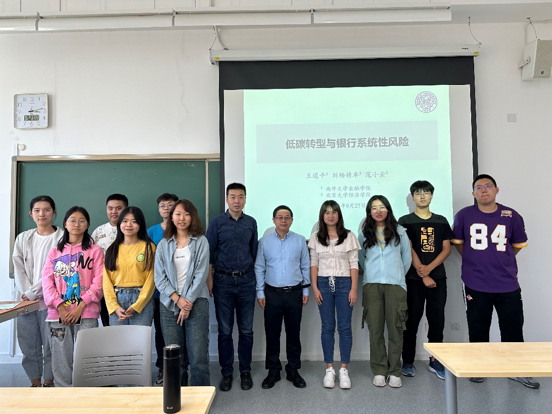 2023年9月27日下午,南开大学金融公司王道平副教授应邀在大数据与管理科学系列讲座上做了《低碳转型与银行系统性风险》主题报告。本次讲座在沙河二教203教室举行,由管理科学系魏璐老师主持,beet365副经理荆中博老师和多位同学参加,共同探讨了低碳转型与金融系统性风险的关键问题。
