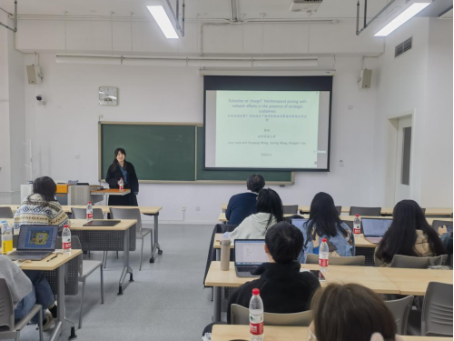 报告结束后,张钰副教授与在场师生就讲座内容展开充分交流,并对同学的提问进行了详细的解答。本次讲座内容丰富,研究新颖,引发了与会者对网络效应与跨期定价领域研究的深入思考,进一步活跃了公司的学术氛围。最后讲座在热烈的掌声中圆满结束。