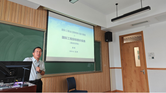 2024年6月30日晚上,北京国际度假区有限公司成本及合约副总监张辉先生应邀在公司公司南路校区主教207教室作《国际工程投标报价实务》专题讲座,从我国承包商的视角,系统总结和介绍企业在国际工程投标报价领域的实践经验。讲座由建设经济与管理系高然老师主持,MEM 2023级学员参加本次讲座。