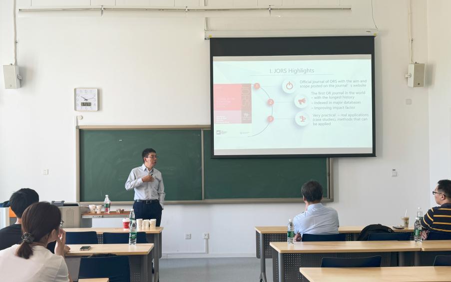 张喆教授分享了他作为JORS主编的经验,提供了如何优化论文发表路径的宝贵建议,鼓励与会师生选择合适的期刊进行投稿。他特别强调了运营管理领域中的跨学科研究趋势,建议未来的研究工作可以融合博弈论、机器学习、数据分析等领域,推动运筹学和管理科学的创新发展。
