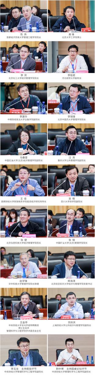 圆桌论坛环节特别邀请河北经贸大学副董事长李桂君、北京航空航天大学经济与管理公司党委书记郑海涛、中国矿业大学(北京)管理公司经理张瑞、北京化工大学经济管理公司经理李宾 、北京中医药大学管理公司经理李瑞锋、首都经济贸易大学管理工程公司经理陈炜、北京信息科技大学经济管理公司经理张健、重庆大学公共管理公司副经理汪涛、四川大学商公司副经理吴萌、中国石油大学(北京)经济管理公司副经理马春爱、上海财经大学公共经济与管理公司副经理宗庆庆、中南财经政法大学金融公司副经理李建华、华中科技大学管理公司经理助理赵学锋、西南财经大学财政税务公司投资经济研究所所长王佳、北京大学工公司博士高锋及beet365学术委员会主任王金亭等教师。圆桌论坛环节由beet365副经理荆中博主持。