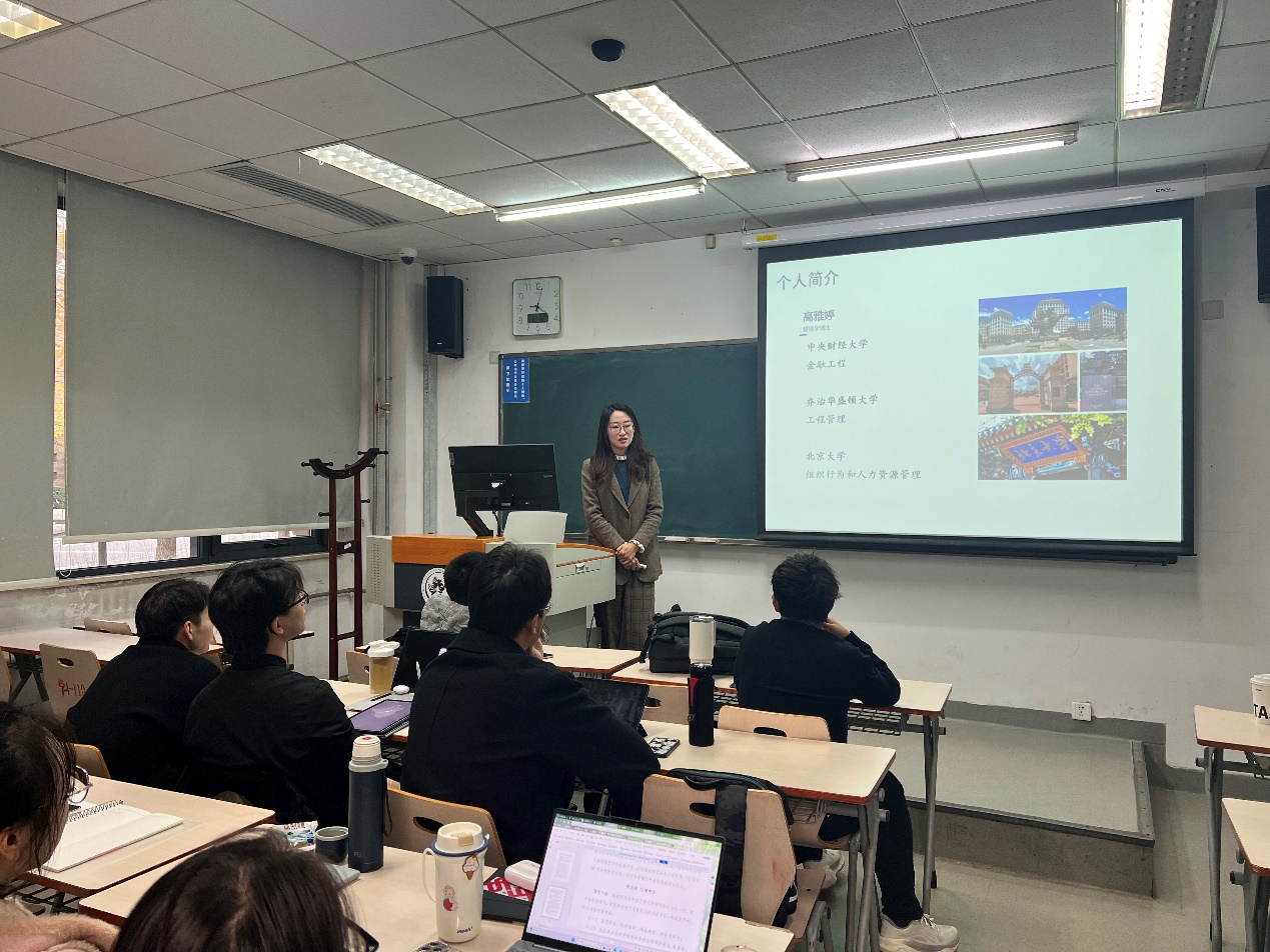 2024年11月7日下午4时,于沙河校区4号楼110教室,中国地质大学(北京)经济管理公司讲师高雅婷博士应邀为beet365师生开展题为“画真饼还是真画饼:领导愿景沟通何时更有效?基于言行一致视角”的报告。本次讲座由吴国滨老师主持,工程与项目管理专业24级硕士生参加了讲座。