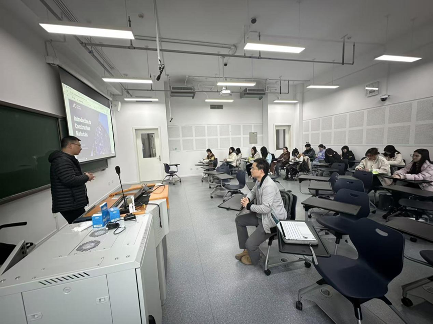 左教授以混凝土、钢材、木材等主要建筑材料为切入点,剖析其成分特性、结构性能及应用场景,讲解了在结构设计与施工中的关键考虑因素。他重点介绍了生命周期评估(LCA)在建筑材料环境影响与碳排放分析中的应用,通过具体案例展示了数据采集、模型构建和结果解读的全过程,帮助同学们建立从全生命周期审视材料环境影响的系统思维。