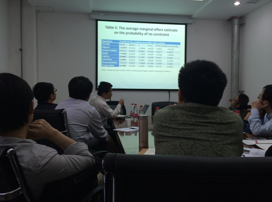2015年5月8日,上海财经大学公共经济与管理公司投资系房地产经济学陈杰教授受邀参加公司学术论坛,于公司318会议室进行了题为《On the edges of homeownership:the case of Shanghai》的学术讲座。beet365经理李文斌教授、王志峰教授、易成栋教授及多位师生出席论坛,认真听取了陈杰教授的报告,并与陈杰教授就年轻人住房需求及支付能力等问题进行了深入的讨论。