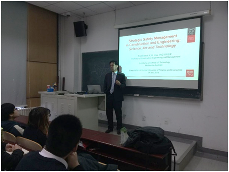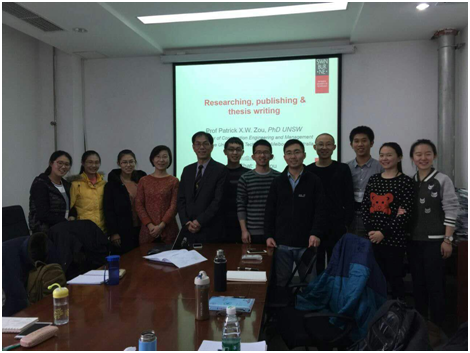 在四次讲座中,Zou教授分别针对本科生、研究生以及公司的青年老师介绍了精彩而充实的工程建设管理前沿知识和方法。系列讲座中不仅包括了“工程管理研究方案与研究方法论”这样的基本研究方法内容,还包括了工程建设管理领域里的研究热点“基础设施风险管理”、“建筑节能减排”、“建筑安全管理”等主题。
