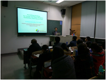 25号周五晚上6:30至8:30,Zou教授在沙河主教302为beet365的研究生以及青年教师进行了《建筑节能改造项目的风险及应对策略》的讲座。Zou教授介绍了既有建筑节能改造项目决策及实施过程中可能发生的风险,并从风险管理和融资方式选择两个方面,介绍了项目业主与节能咨询服务公司等参与方如何进行风险分配,提出了项目风险发生的演化机理,并从稳定合作关系等方面提出风险应对的策略。