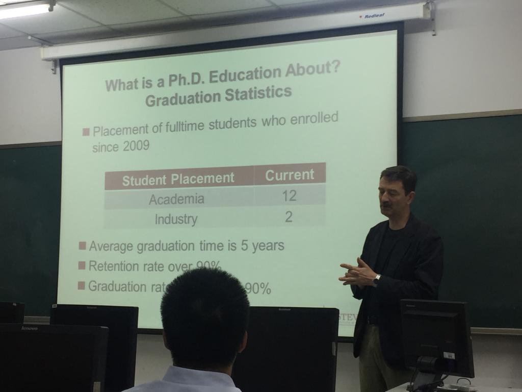 访问期间,Thomas Lechler教授于2017年5月31日下午13:00到14:00在沙河校区公司楼4号楼106举行了史蒂文斯理工公司商公司博士项目介绍会。Thomas Lechler教授作为史蒂文斯理工公司商公司的博士项目负责人,已经在博士生遴选方面与公司有良好的合作基础,已经有几位优秀的同学通过了选拔前往史蒂文斯理工公司商公司攻读博士学位。Thomas Lechler教授对公司员工的学术基础和学习能力十分肯定,因此希望通过宣讲吸引有志于攻读博士学位的同学加入史蒂文斯理工公司。介绍会上,Thomas Lechler教授就博士项目做了简单介绍,包括学习研究方向,培养模式及年限,毕业要求及前景介绍。beet365副经理陈俊华及部分本科生,研究生听取了本次的介绍会。