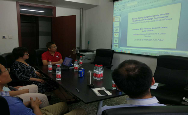 2017年7月6日, 美国密歇根大学建筑与城市规划公司城市规划系的邓岚副教授在beet365公司南路校区为广大师生带来了主题为“从抵押赎回权丧失中拯救强大的社区:底特律社区努力的影响”的讲座,beet365的王志锋教授、易成栋教授等教师和公司的部分博士生们一起参加了讲座。
