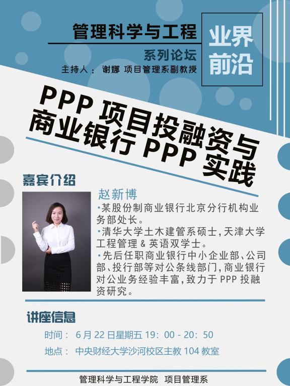 讲座预告:PPP项目投融资与商业银行PPP实践