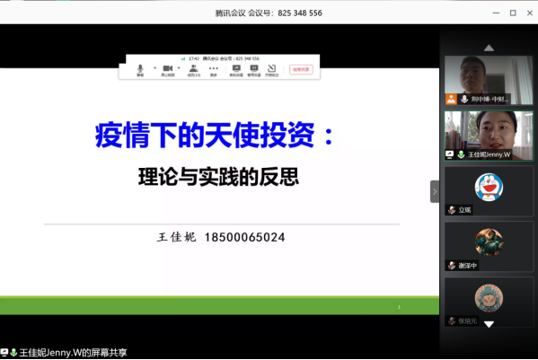 主讲嘉宾王佳妮,现为首都经济贸易大学金融公司讲师,兼任中国管理现代化研究会股权投资专业委员会执行秘书长。王博士曾在中国科公司虚拟经济与数据科学研究中心从事博士后研究工作,师从“中国风险投资之父”成思危先生与中国风险投资权威学者刘曼红教授。讲座围绕中国天使投资发展现状和疫情下的反思展开。论坛主持人是荆中博副教授,与会人员包括beet365经理刘志东教授、宋砚秋副教授、高婷博士和研究生等。