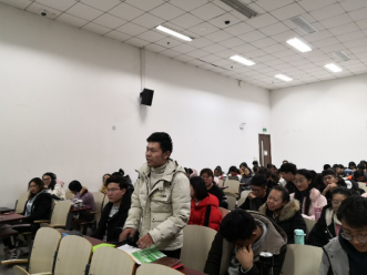 任超锋先生介绍了中国电建及其取得的成绩,强调作为财经类工程管理人才要从战略上紧跟国家政策发展经济,落实“一带一路”倡议,并对在座同学提出几点建议,要求大家认真学习外语,自学法律、金融等知识,成为未来社会需要的综合性人才。