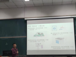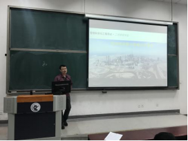 课堂上,常远老师首先做了工程建设与可持续发展的学术报告。内容包括可持续发展面临的挑战、实现可持续发展的途径、碳排放的计算。常老师指出可持续发展目前面临诸多挑战,如气候变化背景下全球气温在逐年上升、台风等极端天气的频发致使人均受灾人口变多、温室效应使得冰川融化海平面上升、可持续发展意识的匮乏导致用水浪费等。当前,全球各国政府和可持续发展组织为应对可持续发展面临的挑战,提出了一系列可持续发展的途径,如绿色建筑,以四节一环保为原则,建造韧性城市与基础设施;建造海绵城市,使得比热容增大,改善环境;绿色交通,多乘公共交通少乘私家车减少碳排放;绿色消费,理性节制尽量选择碳排放少的商品。