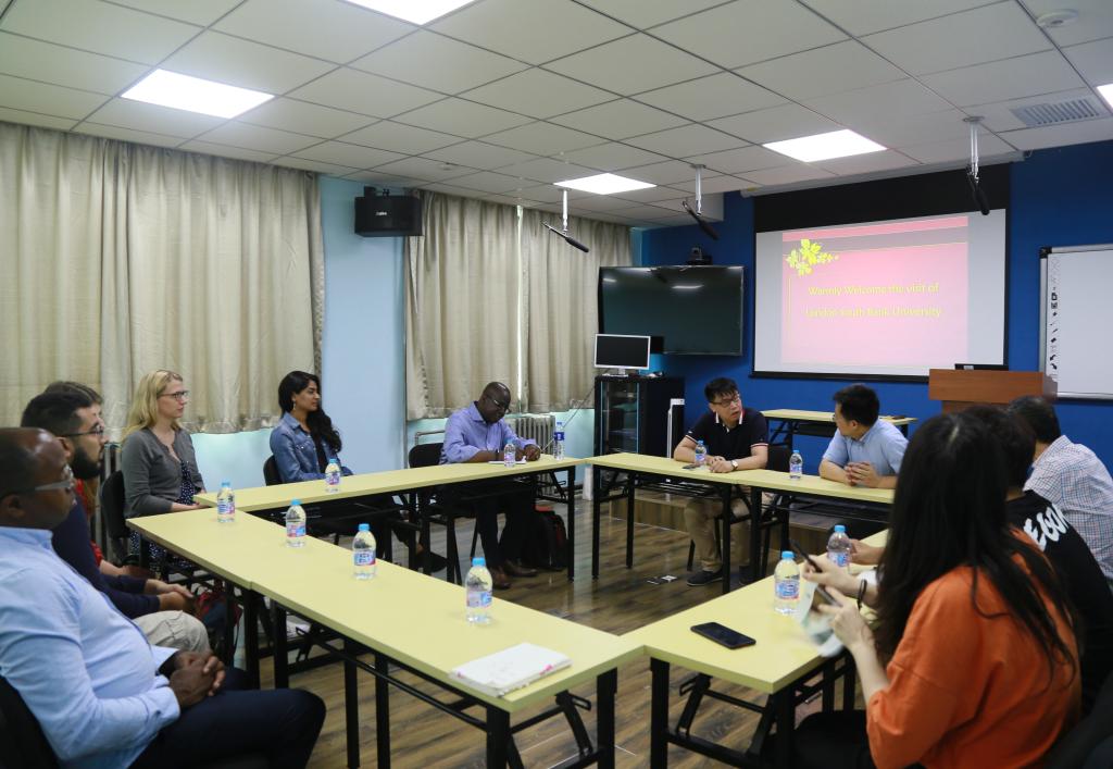 2018年7月12日上午10:00,英国伦敦南岸大学建造环境与建筑公司Herbert Robinson教授,顾国伟副教授及6名优秀研究生一行访问公司,beet365副经理陈俊华副教授、经理助理王昊副教授于主教学楼309进行接待与合作会谈。