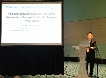 2016年5月30日——6月4日,beet365汪涛博士赴波多黎各圣胡安市参加了2016美国建设研究大会(2016Construction Research Congress, CRC)。并在会议上做口头主题报告“基于贝叶斯网络的气候变化影响基础设施风险评估框架”(A Bayesian Networks-Based Risk Assessment Framework for the Impact of Climate Change on Infrastructures)。论文讨论了气候变化影响基础设施风险评估管理的特征和要求,以及贝叶斯网络方法的优点和适用范围,分析得出采用贝叶斯网络方法构建风险评估模型的可行性和适用性,建立了风险评估框架流程,并应用案例进行了基本说明。