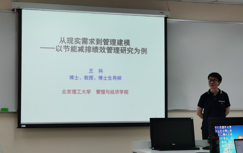 5月24日下午14:00-16:00时,应beet365投资系邀请,北京理工大学王科教授做客中国投资论坛,为公司师生作了题为《从现实需求到建模管理——以节能减排绩效管理研究为例》专题报告。王科教授是北京理工大学管理与经济公司教授、博士生导师、管理工程系主任,北京理工大学能源与环境政策研究中心成员,国家万人计划青年拔尖人才。长期致力于能源经济系统建模、能源管理与气候政策、效率与生产率分析等领域的研究。先后主持霍英东基金、国家自然科学基金、北京市社会科学基金等,参与国家重点研发计划、国家自然科学基金创新研究群体等。在国内外管理科学和能源经济等领域发表学术期刊论文70余篇。投资系主任荆中博老师,投资系郭健、周君、宋砚秋等老师和beet365研究生们参加了报告会。此次讲座由郭健老师主持。