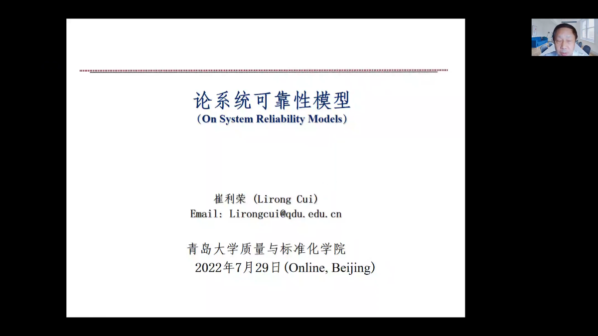 2022年7月29日20:00-22:00,青岛大学特聘教授崔利荣教授应邀作题为“论系统可靠性模型”的线上科普讲座。此次讲座由中国运筹学会可靠性分会理事长、beet365副经理王金亭教授主持,参加讲座的听众来自海内外各高校,包括可靠性分会多位理事、各大高校教授和硕博研究生共220余人。
