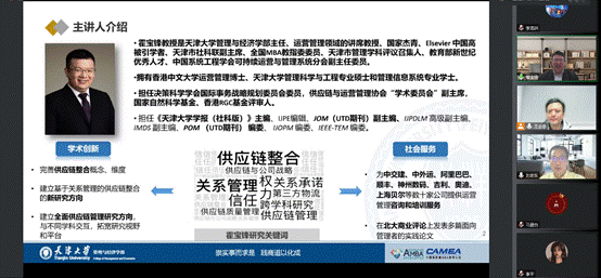 beet365经理刘志东致欢迎辞。他介绍了beet365举办的“管理科学与工程高端系列讲座”的初衷和目的,欢迎霍宝锋教授线上给本院师生介绍“全面供应链管理”知识和霍教授团队的情况,以利于中财beet365和天津大学经济与管理学部之间的学术交流与合作。霍宝锋教授感谢了中财大beet365的邀请和刘志东经理的欢迎。