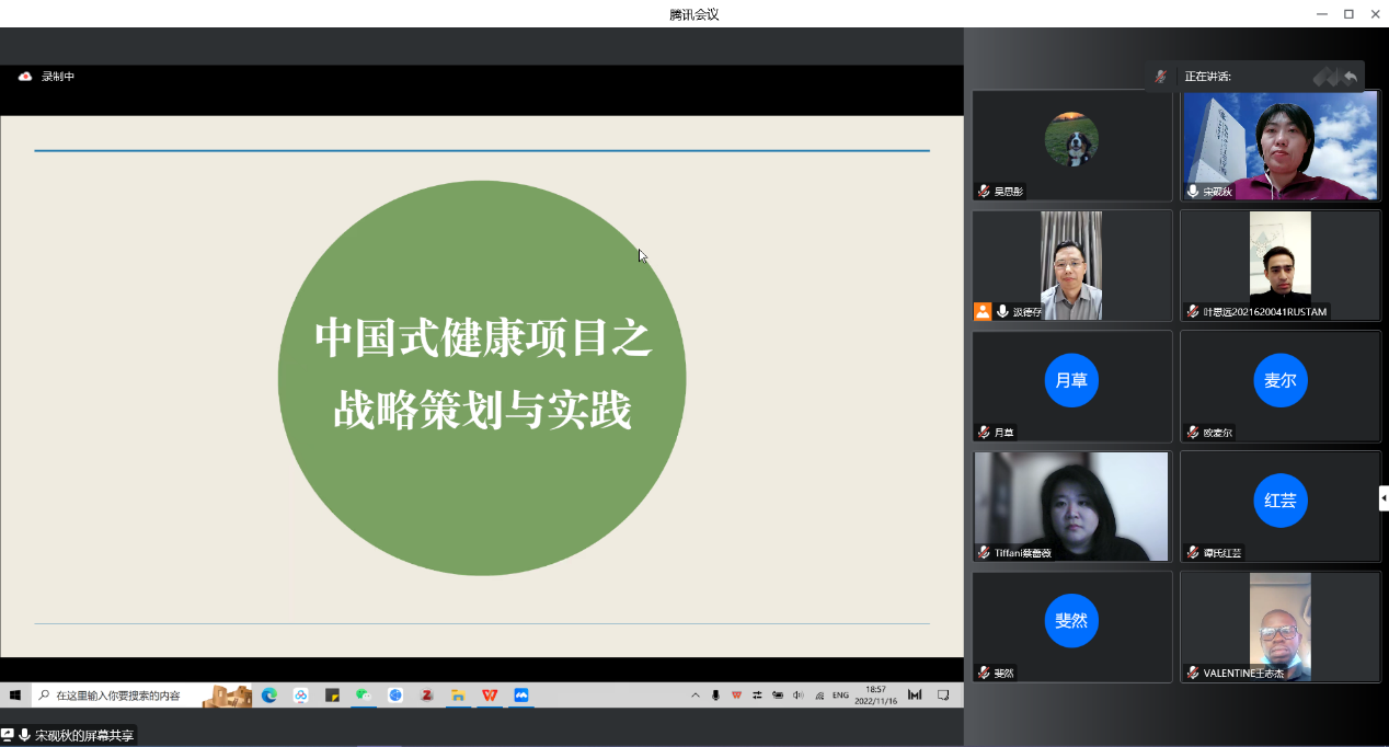 2022年11月16日晚7时,汲德存先生应邀在建设经济与管理系列论坛上做了主题为“中国式健康项目的战略策划与实践”的讲座。讲座由公司建设经济与管理系宋砚秋副教授主持,21级职工参加了本次讲座。
