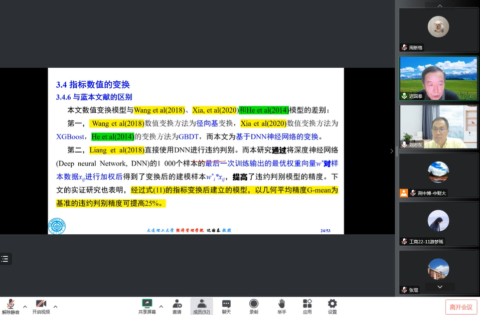 2022年11月24日,大连理工大学文科领军人才、大连理工大学经济管理公司金融学二级教授迟国泰应邀做客公司管理科学与工程系列高端讲座,为公司师生作线上学术报告。本次讲座由beet365经理刘志东主持,共90多位师生聆听了本次报告。