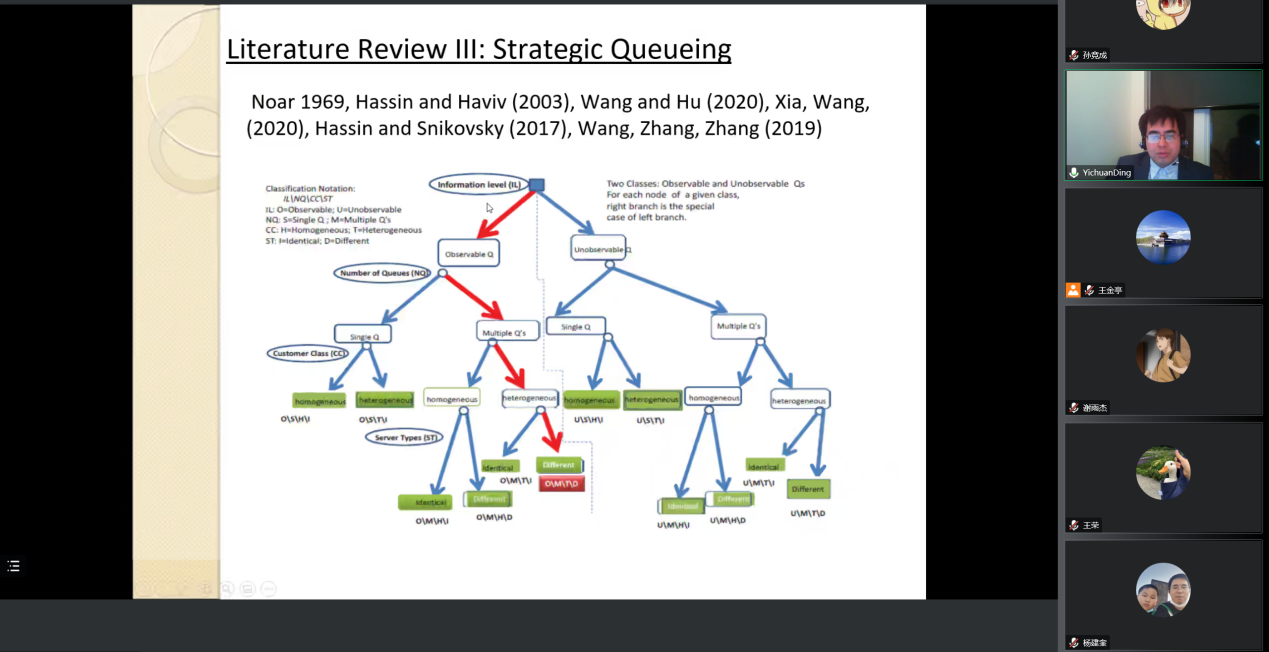 2022年12月7日上午10时,加拿大McGill大学Desautels荣誉学者、McGill大学全球制造和供应链管理项目主任丁弋川副教授应邀为公司师生作了一场题为《Parallel Queues with Discrete-Choice Arrival Pattern: Empirical Evidence and Asymptotic Characterization》的学术报告,这也是beet365“智能管理交叉学科”系列讲座的第14讲。本次讲座由公司王金亭教授主持,近百位海内外的学者和公司师生参与了此次讲座。