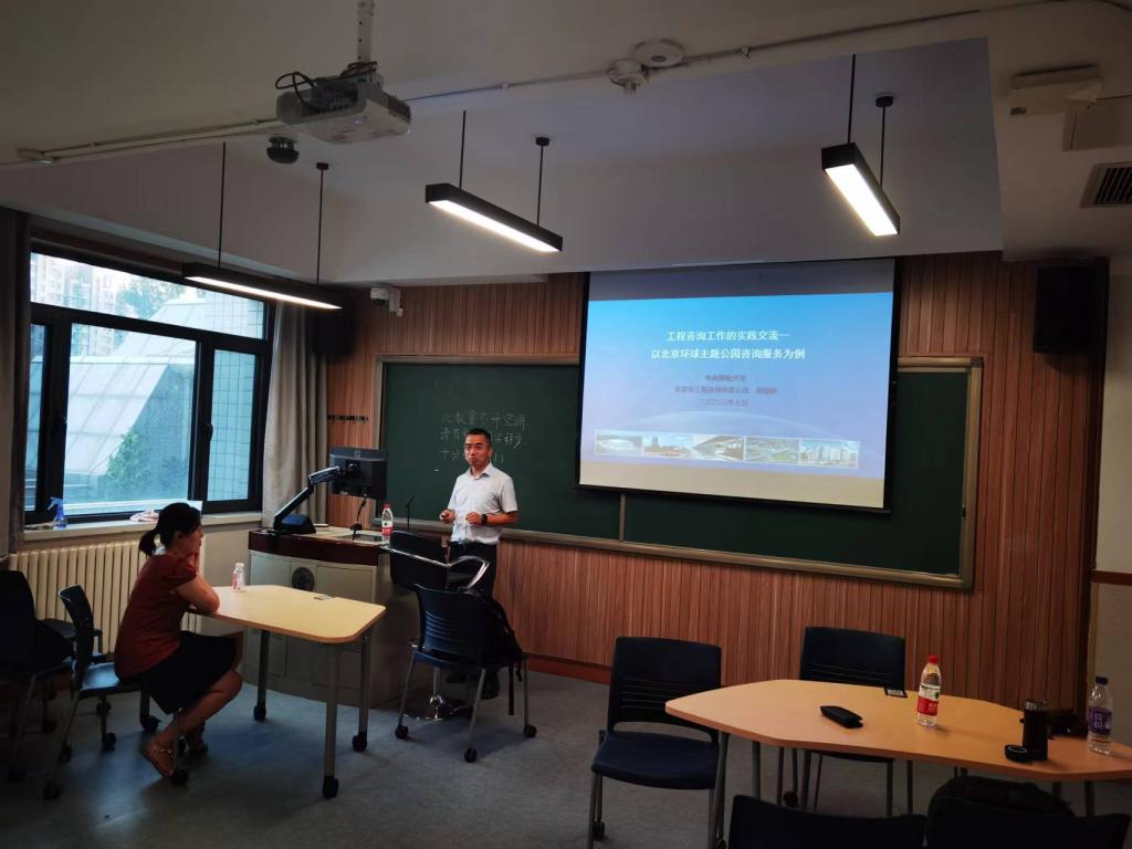 2023年7月6日晚上,在公司南路校区主教207研讨教室,北京市工程咨询有限公司周德秋员工做了《工程咨询工作的实践交流—以北京环球主题公园咨询服务为例》的讲座,公司部分教师和汉语+工程与项目管理专业硕士研究生参加了讲座。
