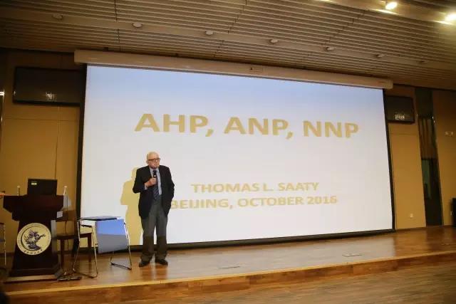 Saaty教授本次学术报告的主题为“AHP, ANP, NNP”。教授以一个故事作为开头,引出了鉴定与推理的四大法则,以及比较的重要性。在他的讲述中,我们知道了每个人的想法都有所不同,并且是带有主观色彩的,这对决策造成了不便。于是,我们进入了正题部分:AHP, ANP, NNP的介绍及应用。Saaty教授首先为我们展示了一个完整的层次水平目标,结合美国大选支持率预测的实例,让我们对层次分析法有了一个直观的感受。此后的每部分介绍后,教授都列举了大量的应用实例及图表,从最开始简单的苹果大小的两两比较,到复杂的国际事务的决策,让我们对层次分析法在国际上的应用有了深刻的体会的同时,又对层次分析法有了较深入的了解。层次分析法的不断优化也向我们展示了创新性思维的进展。