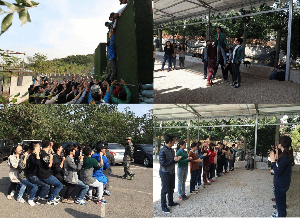 参观结束后,全体党员、积极分子进行了素质拓展训练。“解手链”、“肩膀传球”、“翻越逃生墙”、“左右手互动”,一个个富有挑战的项目,激发出了全体同学的智慧。面对高不可攀的“逃生墙”,在可供使用的外力除了同学以外再没有其他援助的情况下,全体同学团结一致,相互配合、相互信任,以队友为后盾。当第一个同学成功翻越高墙时,全体同学欢呼雀跃、信心大增。尽管素质拓展项目困难重重,但在大家相互协作、相互鼓励下,全体同学最终顺利完成了各项任务,获得了教官的高度赞扬。