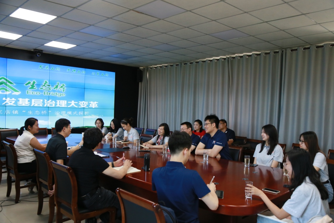刘家店镇党委书记马超鹰对公司师生的到来表示热烈欢迎,他全面系统介绍了刘家店镇基本情况、“五大文化”、大桃特色产业、“生态桥”治理工程等,并表示希望未来刘家店镇与公司保持长期合作关系。姜涛书记对马书记的热情接待表示感谢,她介绍了公司的基本情况和本次乡村振兴服务站建立的整体规划。她表示刘家店镇经济、文化、基层治理等方面有鲜明的特色,公司与刘家店镇的合作始于2018年工程管理系党支部与刘家店镇党委开展红色1+1共建活动,双方建立了良好的合作基础。本次乡村振兴服务站的建立得到公司和刘家店镇政府的大力支持,该项目将在常远教授的带领下,结合当前碳达峰与碳中和的“双碳”时代背景,对典型生态环保项目的环境-能源-经济(3E)效益展开系统化评价,探索美丽乡村建设过程中的绿色发展问题。