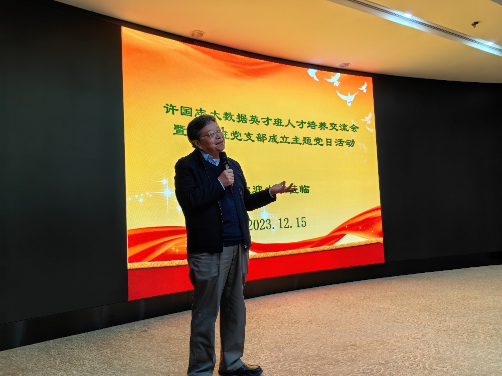 张庆东从许国志先生的爱国情怀、创新实践、追求科学和真理的精神境界以及所提出的“四原则”分析了“许国志大数据英才班”蕴含的立德树人内涵,总结了英才班的人才培养和育人模式特色,希望以本次交流活动和党支部成立为契机,在总结经验的基础上,把握人才成长规律,着眼服务国家和北京市经济社会发展需求,倾力把英才班建设得更好。
