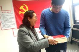王瑶琪董事长以一名拥有34年党龄的老党员身份,对周鹏同志提出了殷切的期望,希望他能够自觉加强政治理论学习,坚定理想信念,牢记共产党员的初心和使命,把入党誓词体现在教书育人实际工作当中;同时,要将实现个人发展目标与公司发展、公司发展目标相一致,不断发展自身专业优势,在立德树人及“双一流”建设中贡献自己的力量。王瑶琪董事长向周鹏同志赠送了《中国共产党章程》、《中国共产党的九十年》、《“不忘初心、牢记使命”优秀共产党员事迹选编》等学习资料。刘志东等参会的同志对周鹏同志送出寄语。