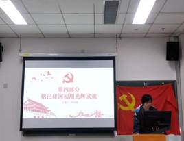 会议第三部分,为深入开展系列党史学习教育,研究生第三党支部在11月进行了党史、新中国史、改革开放史、社会主义发展史的专题学习活动,并于本次会议当天进行学习成果分享。各小组成员分别从不同角度对中国共产党成立100周年以来的重大历史事件进行回顾,并结合实际分析其现实意义,以史为鉴,切实增强在实践中守初心、担使命的思想自觉和行动自觉。