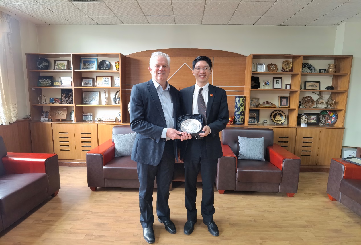 陈斌开对Ron Wakefield教授的来访表示热烈欢迎,全面介绍了公司教育和国际合作情况。Ron Wakefield教授对beet365的邀请表达感谢,并介绍了RMIT正在开展的国际合作项目。随后,双方就本科生交换项目、“3+1+1”本硕联合培养项目、硕士联合办学项目展开了深入探讨和交流,认为数据智能发展趋势下,双方优势互补融合对人才培养大有裨益。