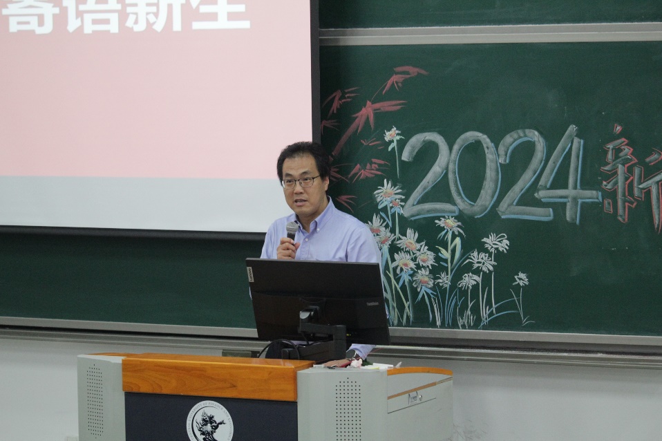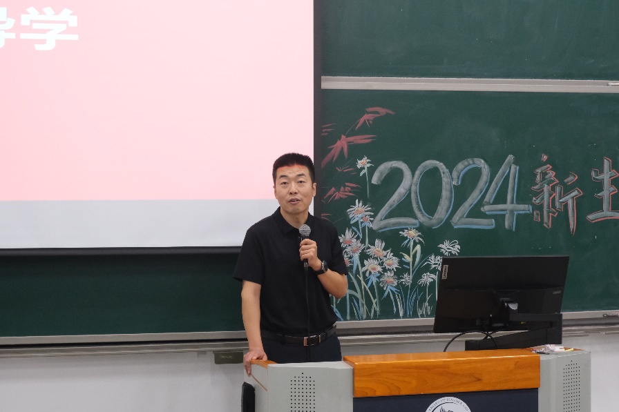 最后,在老员工活和个人成长方面,王志锋提出,各位新管工人一定要调整好心态,适应老员工活拥抱美好未来,并就迷茫焦虑、专业学习方式、专业领域拓展、人际关系处理、安全隐患等问题对2024级新生进行叮嘱,希望大家忙而不急、从容严谨,面对焦虑,他说“明天会来,但明天也一定会过去”。