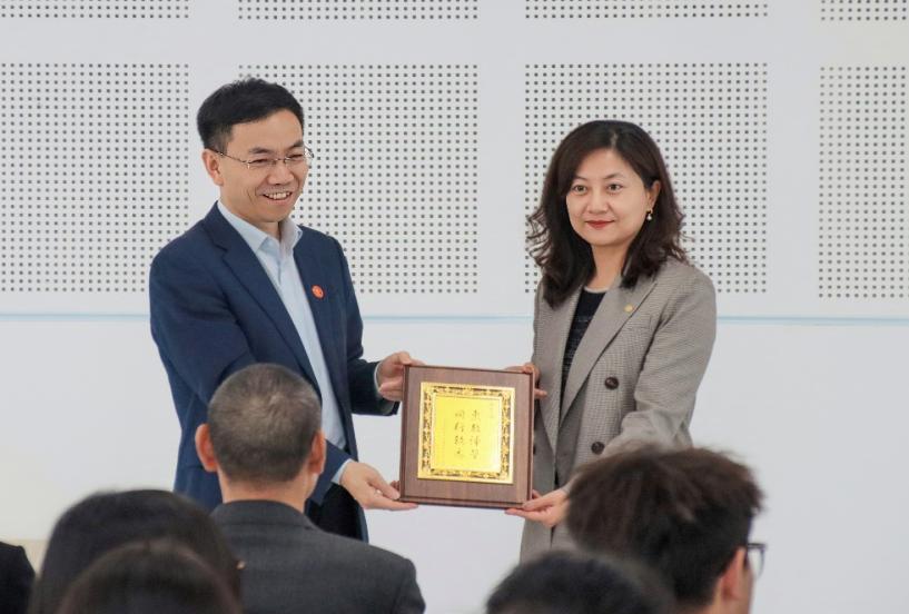 李建军副董事长向陈萍助理颁发捐赠纪念牌