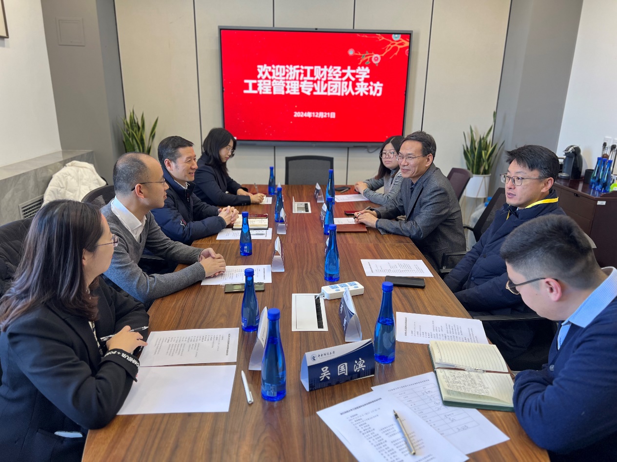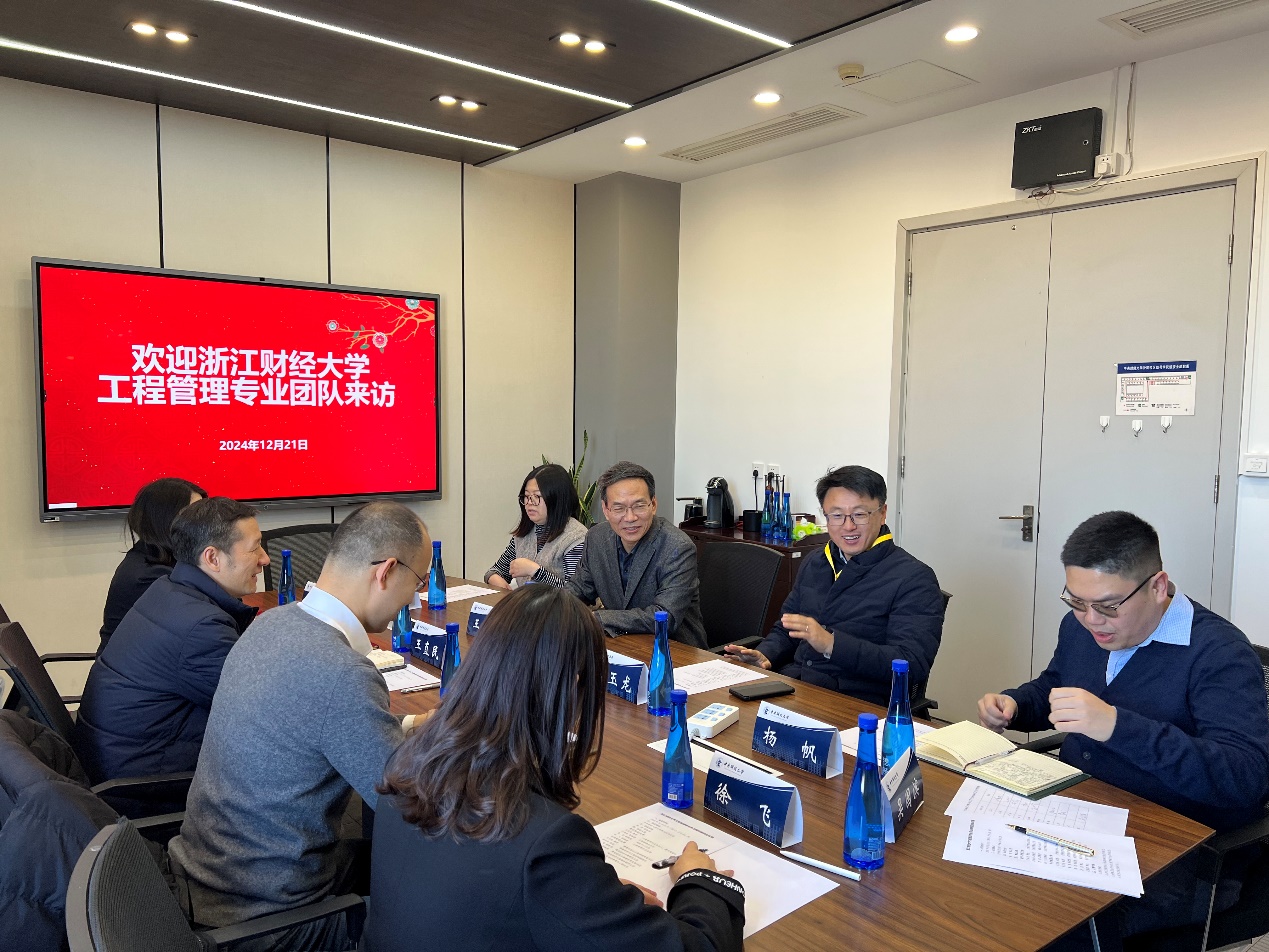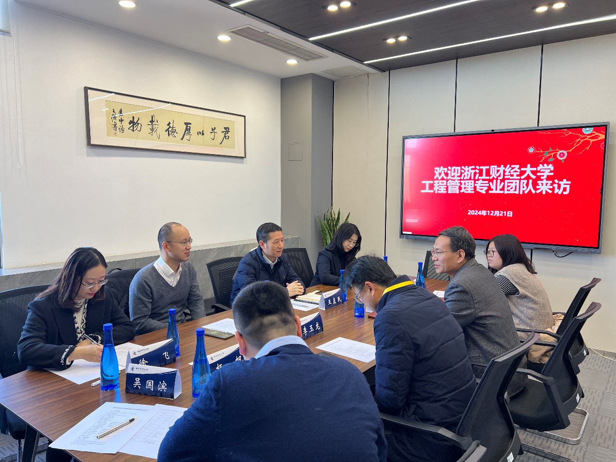 2024年12月21日上午,浙江财经大学工程管理专业负责人、图书馆馆长王直民教授带领工程管理系主任王鸿迪副教授,MEM中心主任黄莉副教授,专业老师代表徐飞副教授来公司调研。公司党委书记王志锋教授,副经理李玉龙教授及建设经济与管理系高然副教授、杨帆副教授、茅权博士、吴国滨博士参加了调研座谈。座谈会由高然副教授主持。