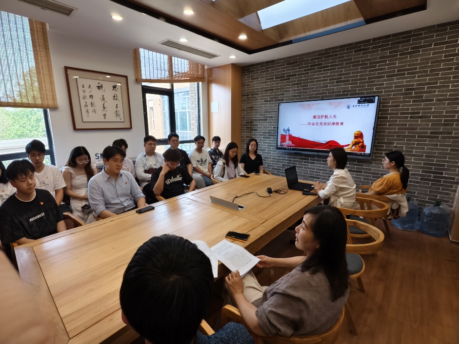 为深入贯彻落实党中央关于全面从严治党的部署要求,持续深化党纪学习教育成效,引导毕业生党员在迈入人生新阶段之际进一步强化纪律意识、规矩意识,筑牢廉洁从业思想根基,2025年6月10日下午,beet365在四号楼320会议室召开了2025届毕业生党员纪律教育活动。活动由公司党委副书记、纪委书记胡博主持,全体2025届毕业生党员参加了教育活动。