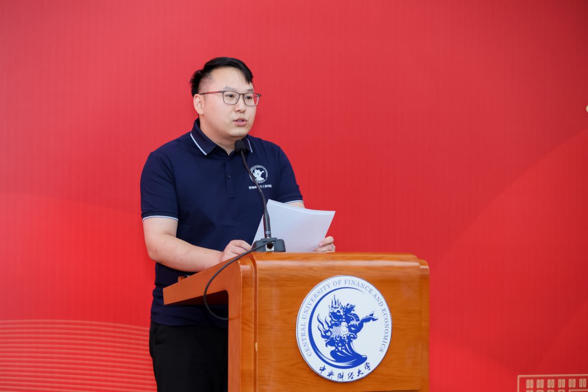 2025级MEM新生陈家瑜在发言中分享了与中财的深厚缘分。在大学时,他便对近在咫尺的中财心生向往,如今圆梦成为中财学子,内心无比激动。作为通信行业从业者与新晋父亲,他深刻认识到家庭责任与时代要求,为紧跟技术迭代、给孩子树立勤学榜样,选择加入中财 MEM 项目。他倡议同学们永葆空杯心态、坚持知行合一、珍视同窗情谊,愿与同学们共惜学习时光,书写成长华章,祝大家学有所成,不负韶华。