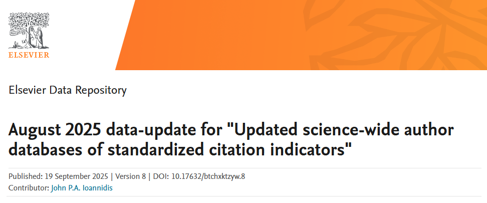 当地时间9月19日,斯坦福大学(Stanford University)和国际权威学术出版社爱思唯尔(Elsevier)共同发布2025年全球前2%顶尖科学家榜单(World's Top 2% Scientists)。此榜单分为“终身科学影响力排行榜(Career-long Impact)”和“年度科学影响力排行榜(Single-year Impact)”两大部分,从全球近700万名科学家中,通过基于其论文引用数、h因子、合著者修正的hm因子、单独或第一作者的文章引用数等综合参数,遴选出世界排名前2%的科学家,涵盖22个领域和174个子领域。其中,“终身影响力”榜单统计科学家职业生涯期间的综合表现,“年度影响力”榜单则聚焦上一年度的学术影响力。