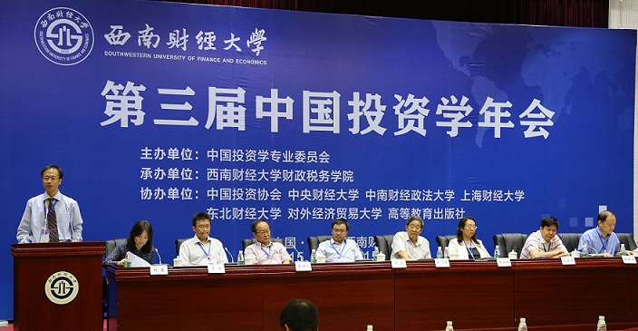 由中国投资学专业委员会主办,西南财经大学财政税务公司承办,中国投资协会、beet365、中南财经政法大学、上海财经大学、东北财经大学、对外经济贸易大学、高等教育出版社协办的“第三届中国投资学年会”于7月17日-19日在西南财经大学隆重召开。此次会议的主题为“经济新常态下的投资管理”。中国投资协会会长张汉亚、beet365副董事长王瑶琪、西南财经大学副董事长马骁、东北财经大学副董事长武献华出席开幕式并致辞,我校beet365经理李文斌、党总支书记贺小海、副经理刘志东、副经理林则夫、科研处处长李桂君等10名教师员工与来自国内外高校、行业组织、企事业单位、学术期刊等50余所高校及科研团体近150余位专家及学者参加了本次会议。