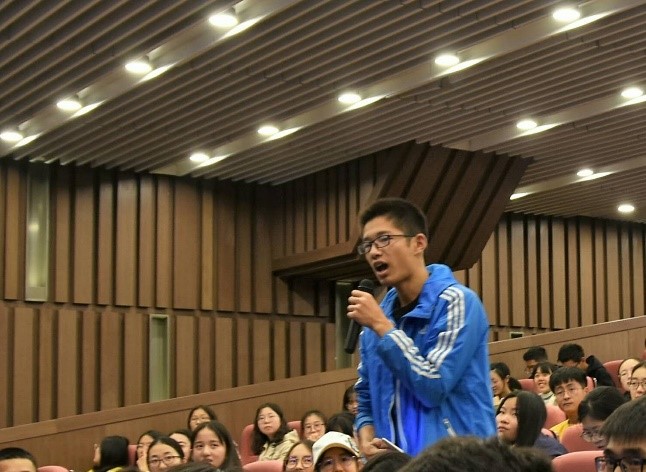 教授授课结束后,在场同学踊跃提问,并就当下“房住不炒”、欠发达地区发展思路、科技创新与城市化等社会热点问题与教授展开讨论。教授对同学们所提问题都进行了详细的解答,现场气氛活跃,同学们受益匪浅。
