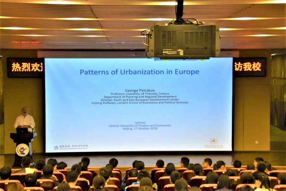 2018年10月17日,希腊色萨利大学前董事长Petrakos教授,受邀为公司同学进行一场题为《Patterns of Urbanization in Europe》的短期授课。讲座在骋望楼负一层报告厅举行,公司王昊老师、高菠阳老师以及16级、17级、18级全体同学参加了此次活动。