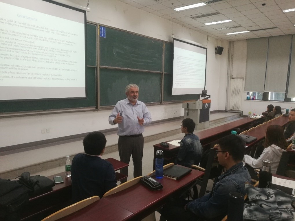 2018年10月18-19日,希腊色萨利大学规划与区域发展公司经理Petrakos教授在公司沙河校区主教学楼为公司师生带来了主题为《Regional development policies in Greece》的短期授课。beet365陈俊华副经理、以及来自投资学16、房地产开发16、管科16和项目16的同学们参加了授课。