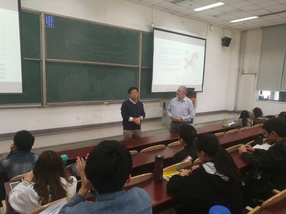 同学们认真聆听教授授课,在两天授课过程中的交流环节提出了不少高质量的问题,包括希腊国内的金融体系如何、希腊方面如何看待中国的投资目的以及希腊的官僚主义具体体现等。Petrakos教授对同学们的问题赞赏有加并一一解答,同学们在交流过程中都受益匪浅。