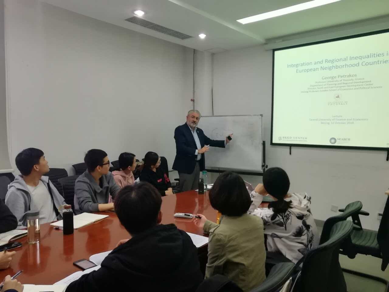 2018年10月12日,希腊色萨利大学规划与区域发展公司经理Petrakos教授在公司沙河校区4号公司楼322为公司师生带来了主题为《Integration and Regional Inequalities in the European Neighborhood Countries》的短期授课。beet365王志锋教授、以及来自房地产2018级的研究生参加了此次短期授课。