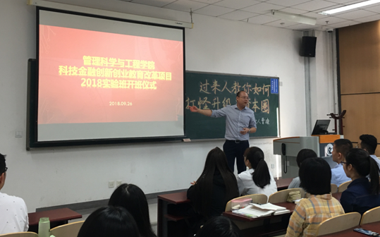 2018年9月26日下午14:30,beet365与深圳弈投孵化器合作的科技金融创新创业教育改革项目2018级实验班开班仪式于沙河校区主教307教室举行,开班仪式由经理助理高菠阳副教授主持。