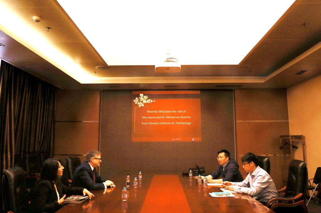 201857日,美国史蒂文斯理工公司商公司主管研究生的副经理Michael zur Muehlen教授及史蒂文斯理工公司研究生院招生办主任Dina Iskaros教授一行访问公司,beet365副经理陈俊华副教授、经理助理王昊副教授参加了会谈。
