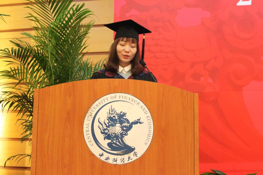 在师生代表发言环节,首先由2013级工程管理班尉方作为毕业生代表发言。她代表公司全体毕业生向辛勤付出并给予无限关怀的老师和家长表示感谢。她深情回忆了大学四年的学习经历和在公司收获的成长与友谊,表示将秉承母校“忠诚团结,求实创新”的校训,做有责任意识并敢挑重担的人,为母校、为公司争光。最后,她向公司、公司、老师和同学们送上了美好祝福。