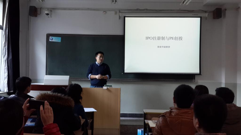 接下来,陈俊华副教授为学员做了“IPO注册制与PE创投”专题报告。他详细讲解了注册制改革沿革现状、注册制与核准制的区别、IPO注册制实践的启示、私募股权基金的商业模型、中国私募股权投向、亚洲私募股权版图、中国著名PE/VC监管人、IPO注册制改革对公司引入PE的影响分析。报告内容丰富、有趣,引发大家的阵阵掌声。