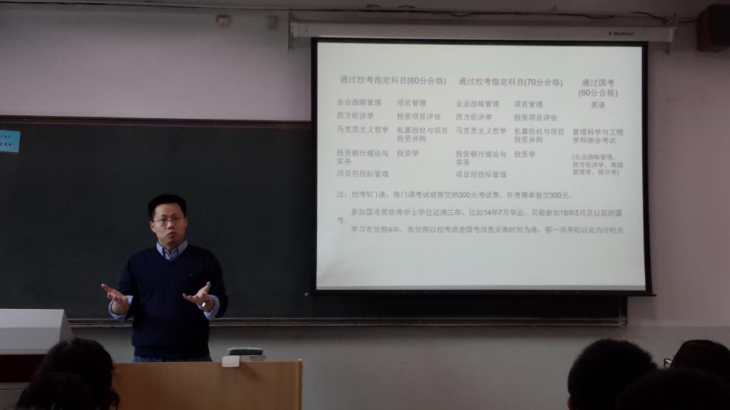 过老师首先对全体同学表示了祝贺,对中财大和项目管理协会的大力支持表示了感谢。他表示本项目的筹备过程投入了大量的精力,项目设立的宗旨是为员工提升学历、未来发展打开上升通道。他希望全体学员按照研究生的标准严格要求自己,遵守公司相关规章制度,认真完成学业。