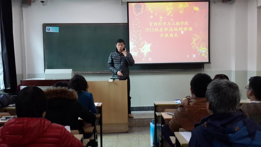寒风萧瑟,冬雪未消。 2016年1月9日,beet365工程与项目管理专业在职高级研修班在公司南路主教学楼107教室隆重举行,经理助理陈俊华副教授、教务人员魏飘飘老师以及全体新生学员参加了此次开班典礼。开班典礼由过老师主持。